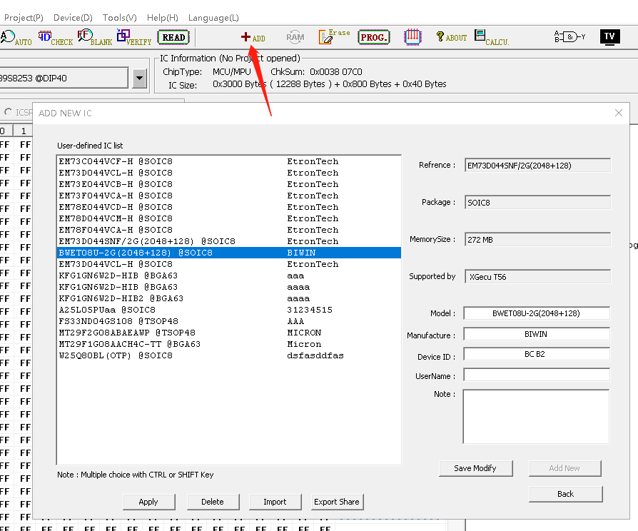 1. Please increase the history list of the latest chips. For example, up to 20, like RT809H. A list of 10 entries is no longer enough, since the program is used for three programmer models at once.