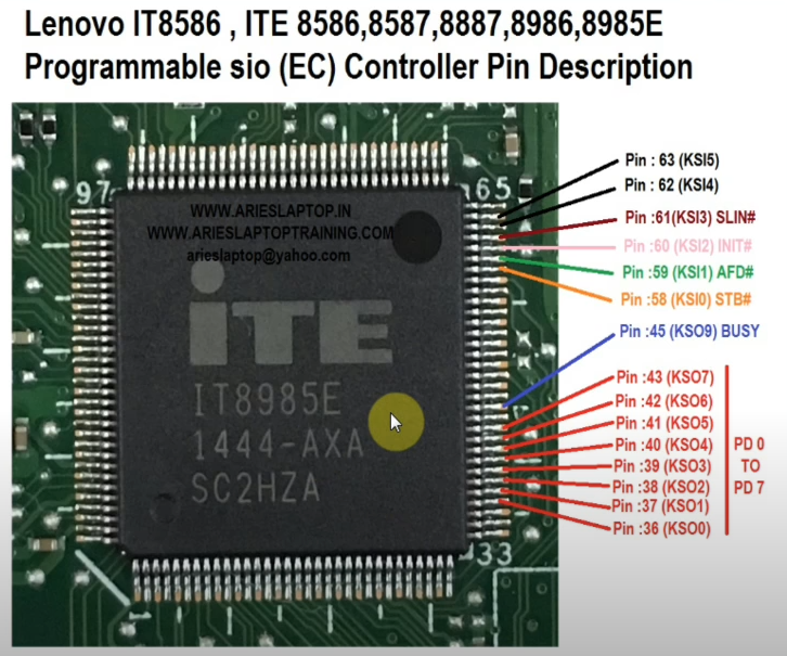 Please makeprogramming with the ITE_Adapter_RT809F adapter. It will allow you to programITE8XXX through the keyboard connector. This adapter can also program KB90XXthrough the keyboard connector (you only need to add a 3.3 volt output from theISP connector to power the chip).