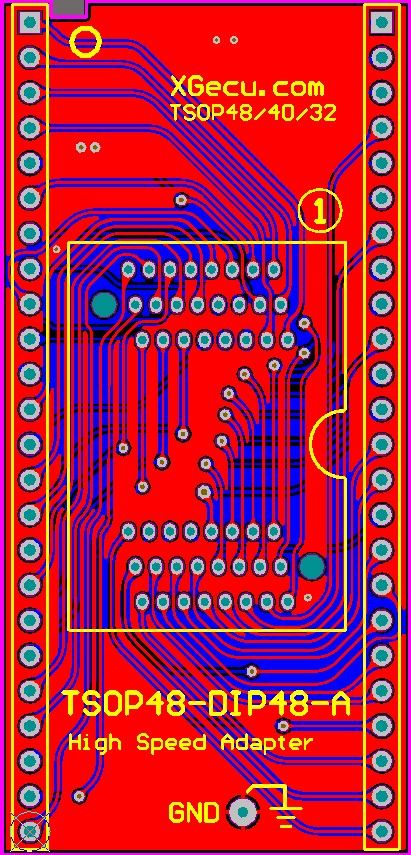 已重新打样一个通用型的TSOP48高速适配器,使用弧形走线,加入屏蔽隔离,能很好解决时钟信号干扰的问题,同时对其他NOR FLASH也可支持,收到后进行测试,应该可以解决问题。估计 3-4天后能收到。