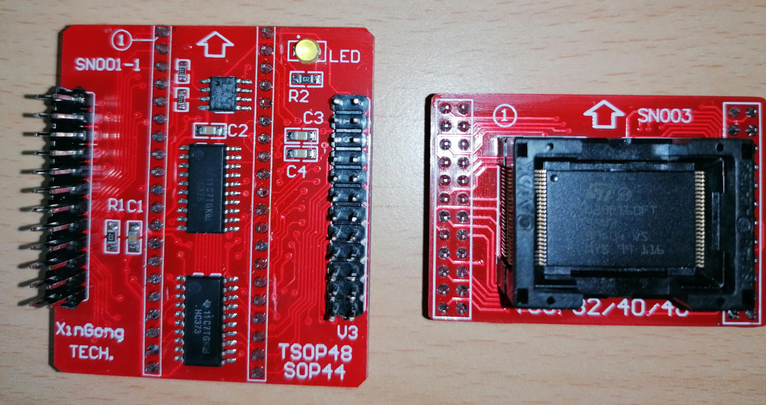 i have an Xgecu TL866II Plus programmer and ordered an TSOP48 Adapter Board (SN001 V3 and SN003). When i try to read the flash chip M29F160FT i only get the message "check adapter and position" from the software Xgpro v12.32.