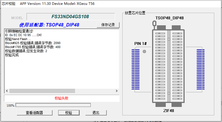 然后 又尝试按照该芯片的数据手册将电压调至3.3V 重新读取后校验错误依旧,使用低速模式(报错块会稍有减少)错误依旧。