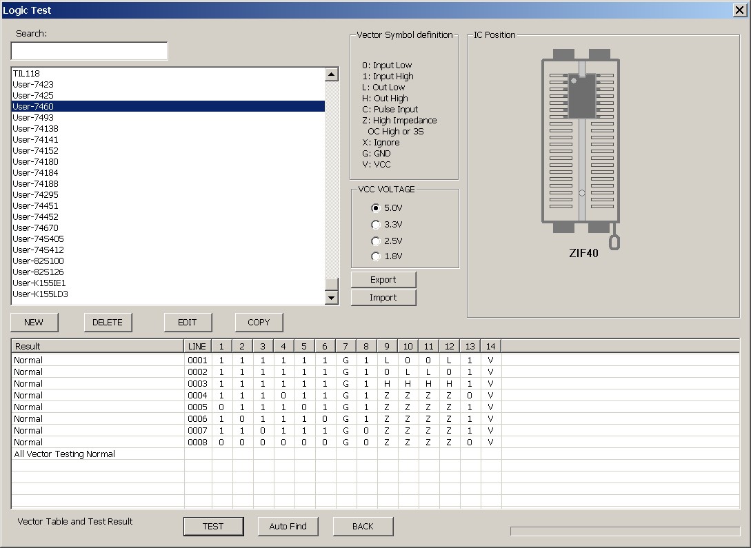Attached is a revised Vector Table for the 7460, 7493, 74138, 74194 logic IC.