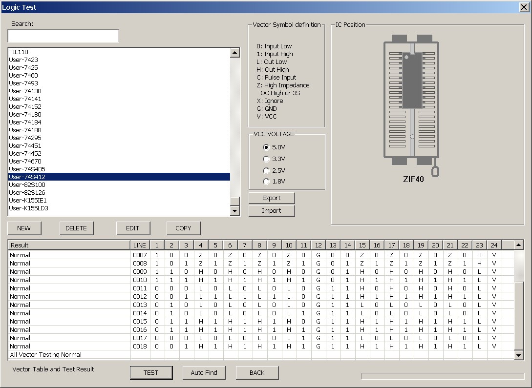 » New Logic Test - 74S405, 74S412 Vector Table