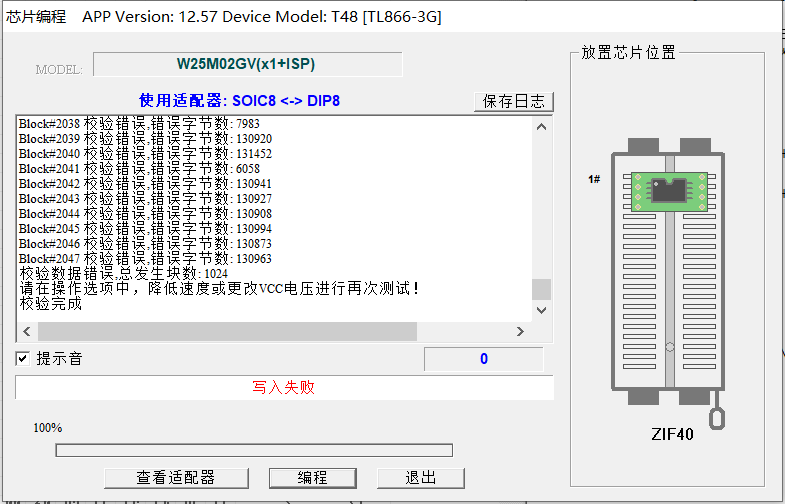 求助T48(TL866-3G)编程W25M02GV校验错误