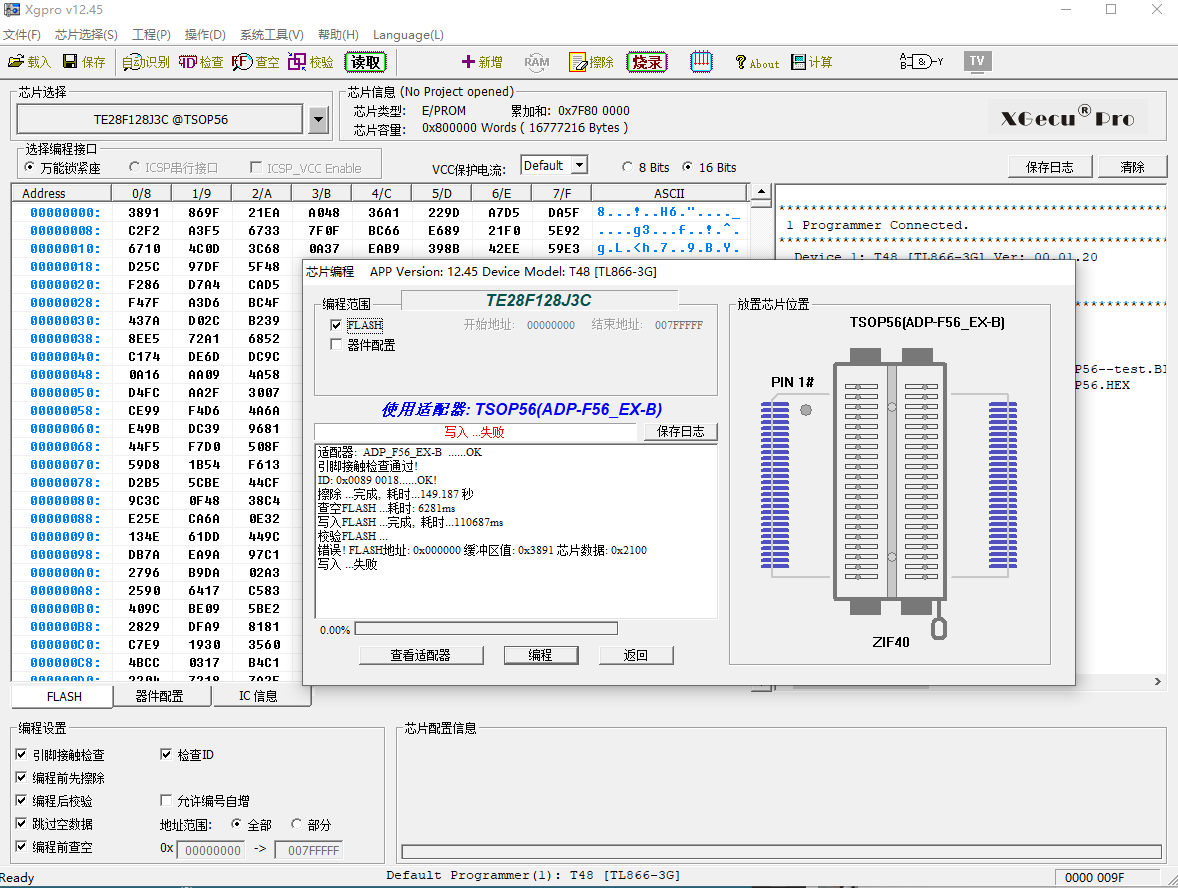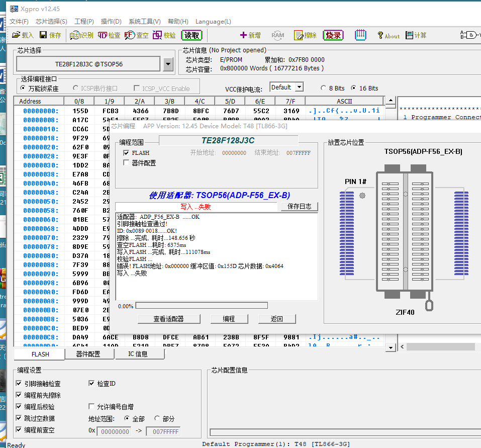 T48烧录TE28F128求助!