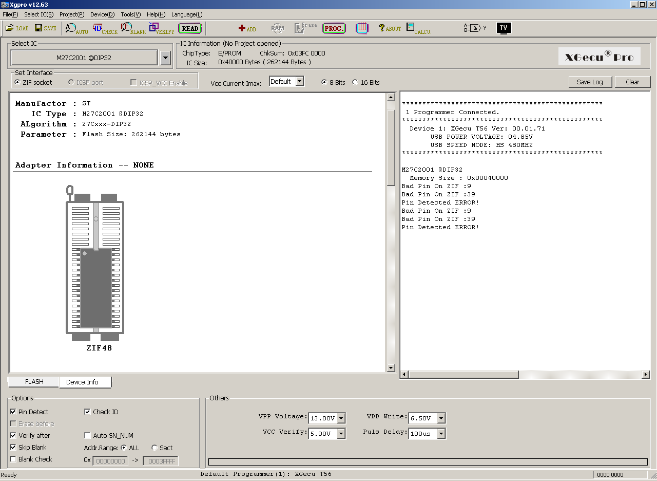 "Bad Pin on ZIF : 39" - there is NO pin 39 on 32-pin chip???!!!