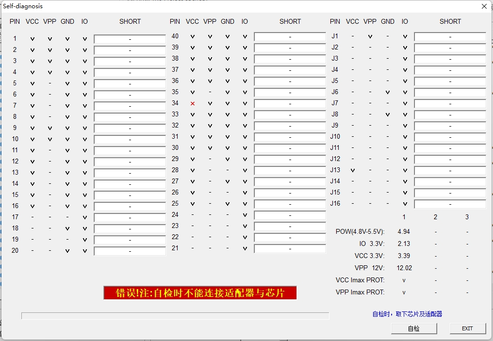 T48编程器 自检出错,,,而且每次自检错的地方都不同
