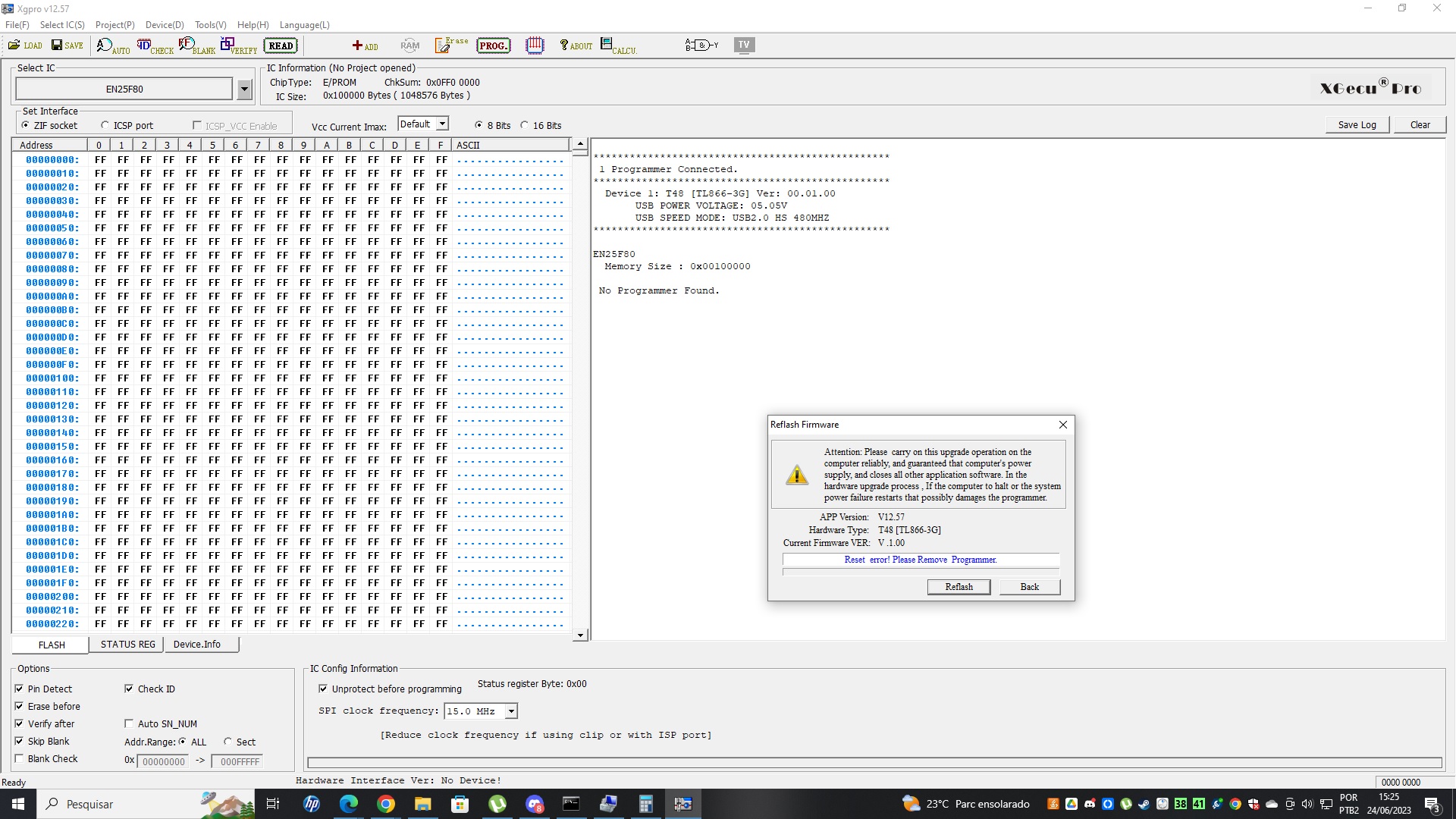 | I was using version 12.55 working fine. I updated the software to version 12.57. I did the firmware reflash procedure, as requested, after 15 seconds I get the Reset Error message! Please Remove Programmer. I've tried the procedure several times and I always get this error message. Whenever I try to perform any operation, the software informs me that it is necessary to reflash the firmware. I tried to downgrade to version 12.50 and 12.55 which are the versions available for download, but the same error always occurs. What is the solution for this problem? Thanks! |