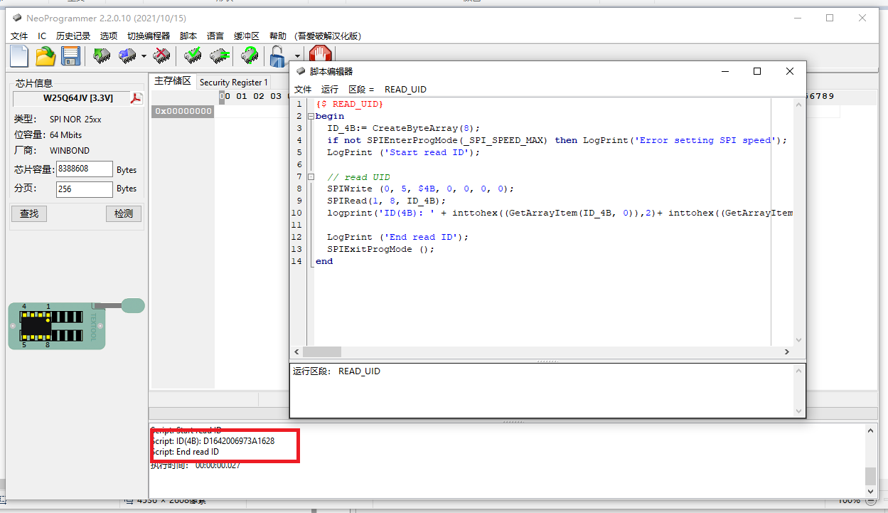 求助:WINBOND的W25Q64 SPI Flash能否通过编程器T48直接读出Unique ID Number(4Bh)呢?我们需要读取出后改好软件然后再烧写进去,有其他厂家的编程器可以通过运行脚本来读取,贵司的编程器能否提供读这个UID功能,或者是已经有了我没发现。