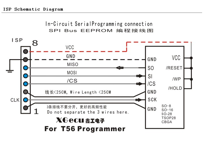I have been trying to program a M95640-W for a while using ISP and the connections stated for the chip. I can read the chip but when I try to program the chip (just the status register) I get the reply during the verification phase that the programmed value is not identical to the one on the chip. Even though the xgPro program states the operation was successful.