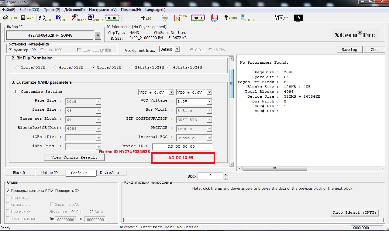 Fix the ID HY27UF084G2B
