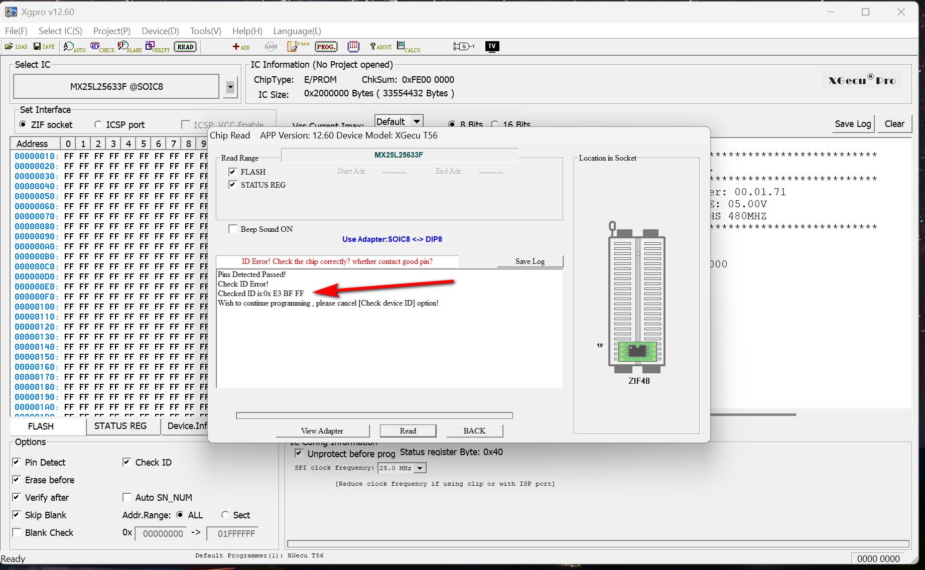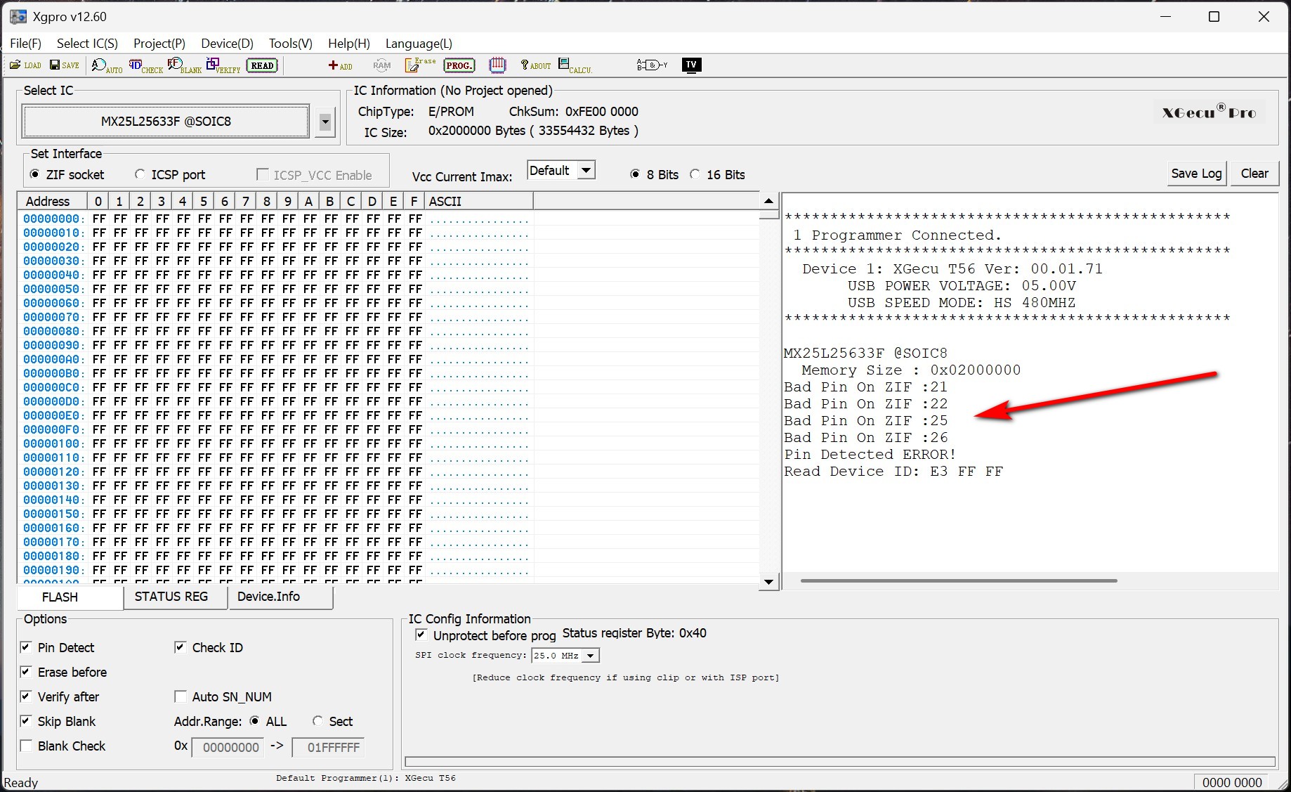 MX25L25673GZ4i-08G Read-Write Problems. assistance requiredThe chip is serviceable, readable by another programmer and works in the laptop.