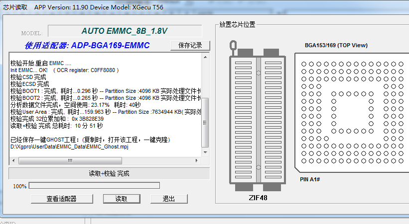 用T56编程器读取出来的BGA153闪存数据文件有5个,如何EMMC一键克隆把数据烧写到另外一片BGA153闪存去使用?
