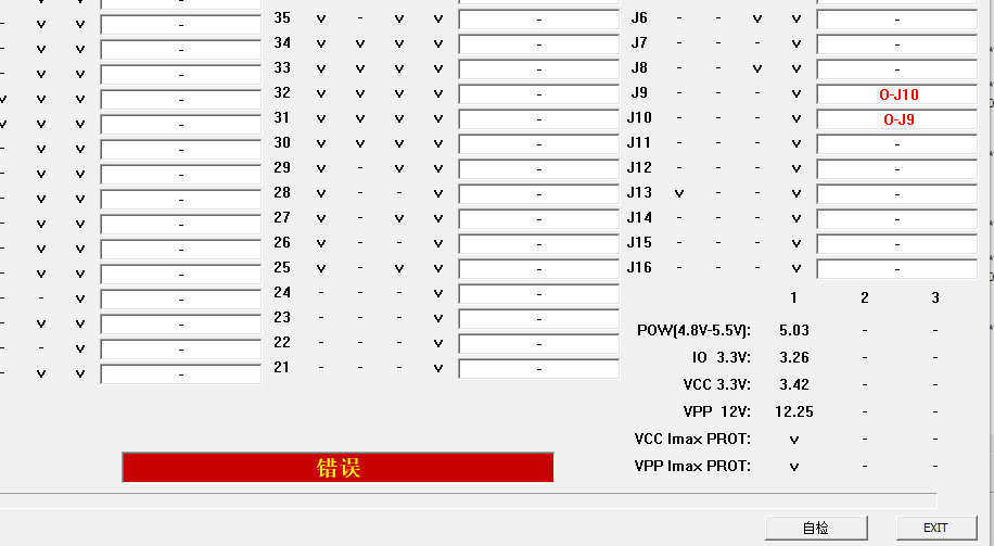 这个是 ISP 是9与10脚短路了,自检时不能插ISP线,如果没插,只能寄回修了
