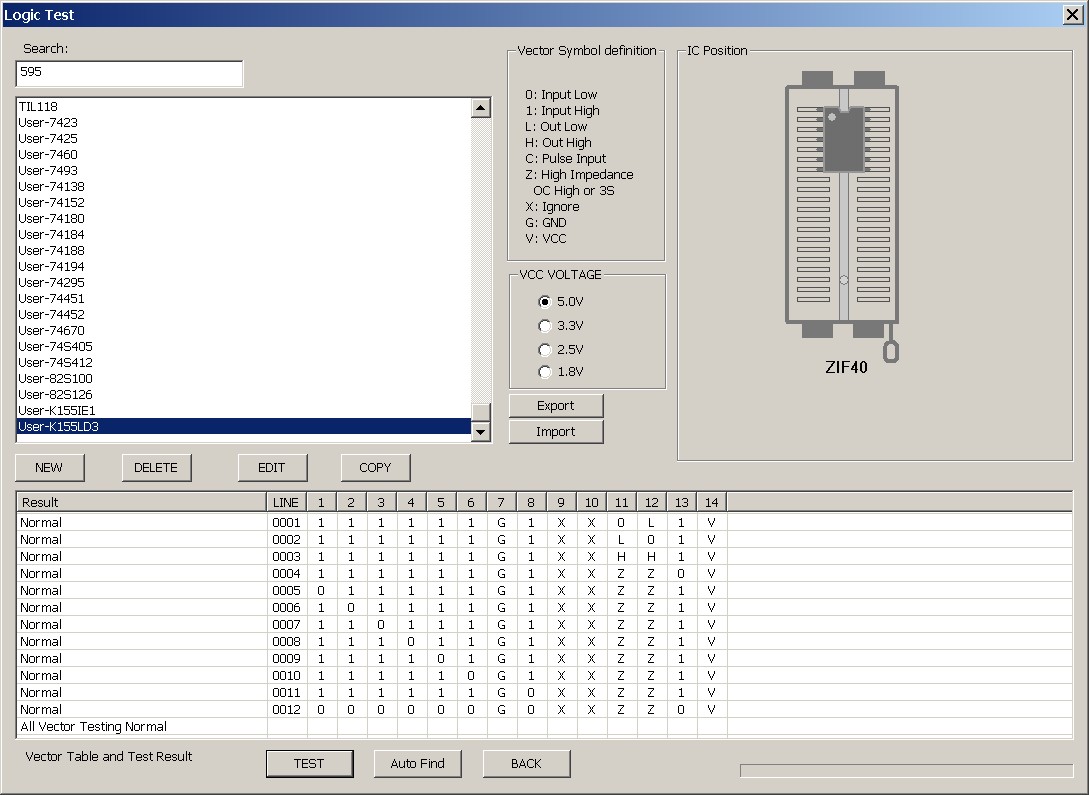 » New Logic Test - K155IE1, K155LD3 Vector Table