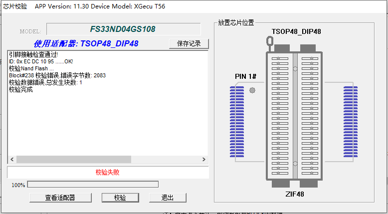 然后 又尝试按照该芯片的数据手册将电压调至3.3V 重新读取后校验错误依旧,使用低速模式(报错块会稍有减少)错误依旧。