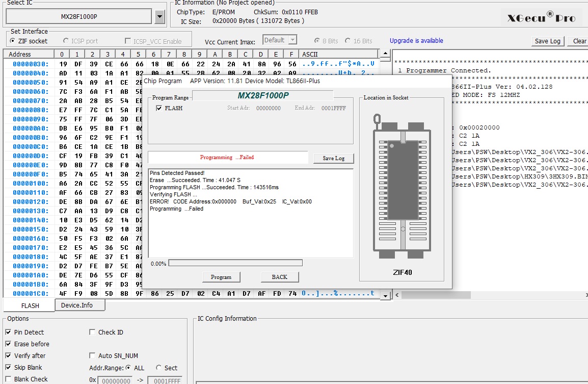 As an user...It looks that you are running 11.81 version of Xgpro app. Have you tried to upgrade to 11.90 ? Sometimes, bugs are corrected even for already supported ICs...